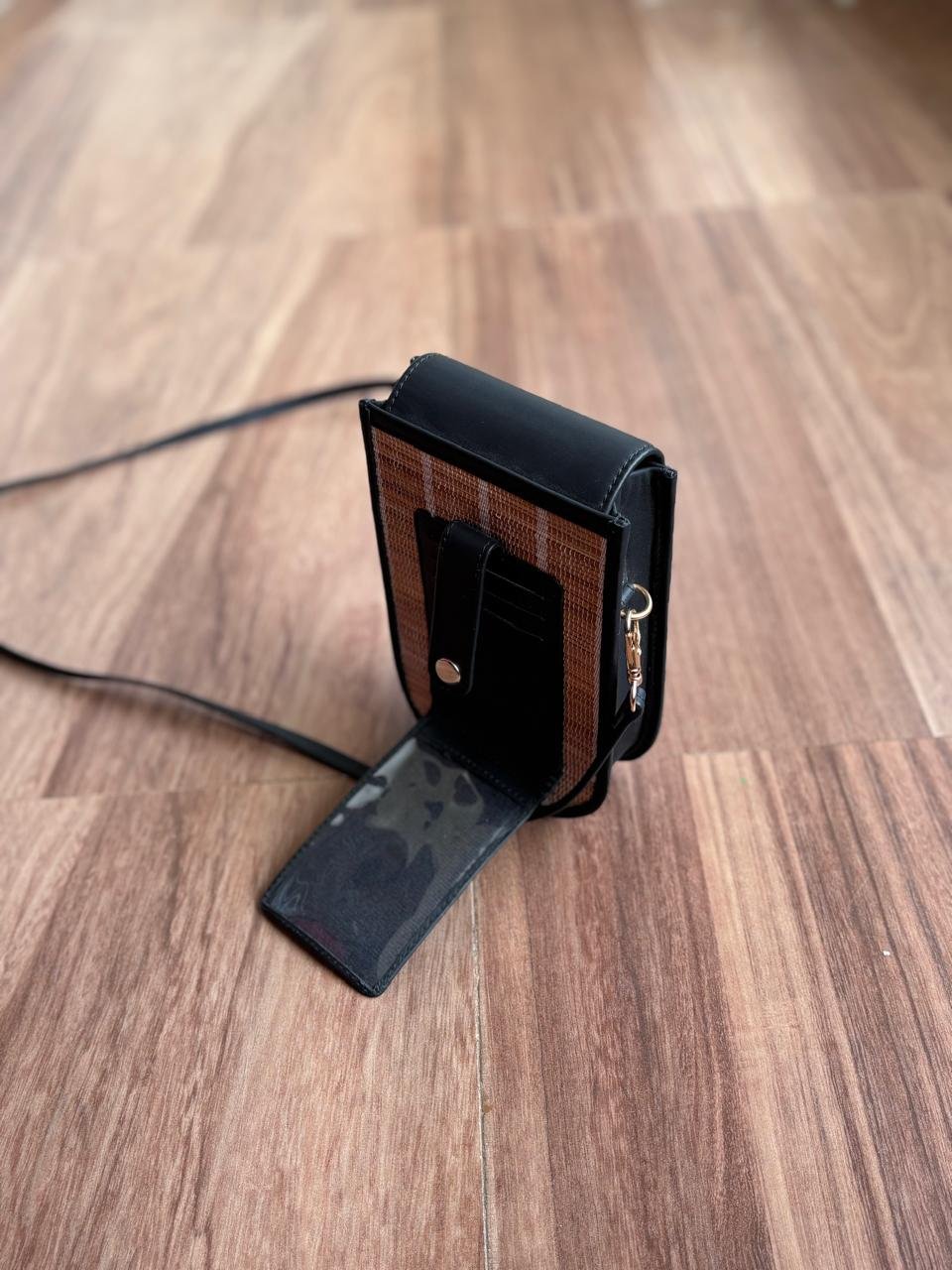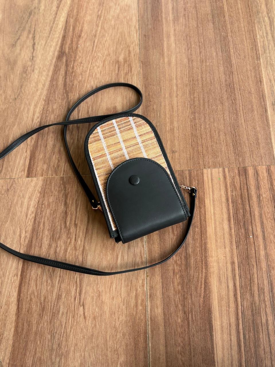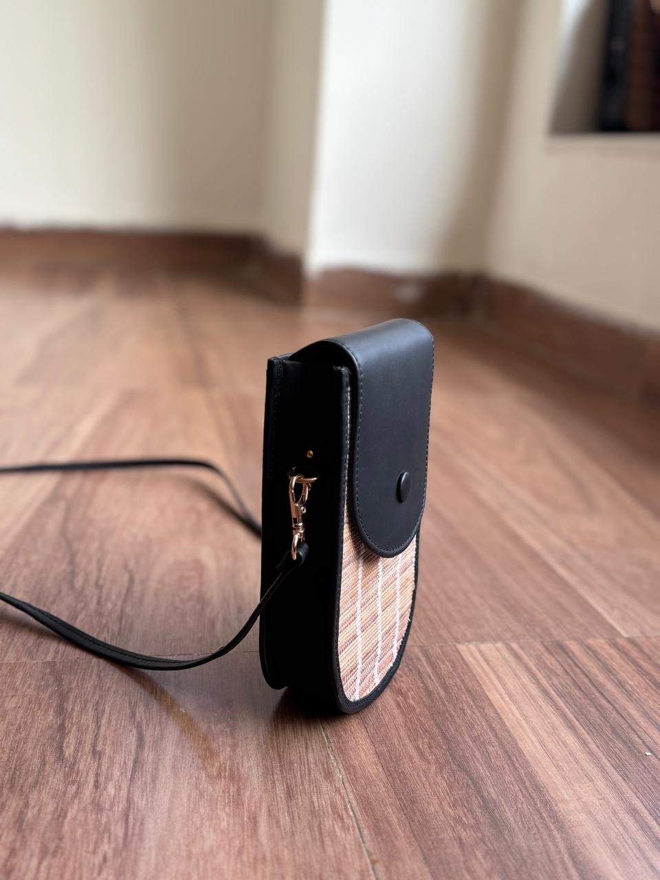 A perfect blend of elegance and everyday convenience, this Mobile Sling Bag is designed for those who love compact style without compromising function. Featuring a sleek black flap paired with a textured woven from cardamom mats , it brings a modern, earthy charm to your daily carry.