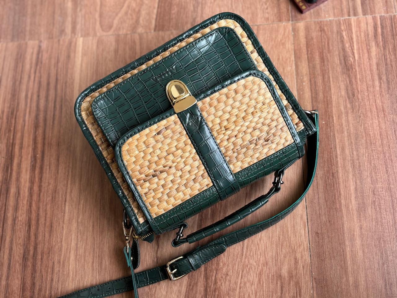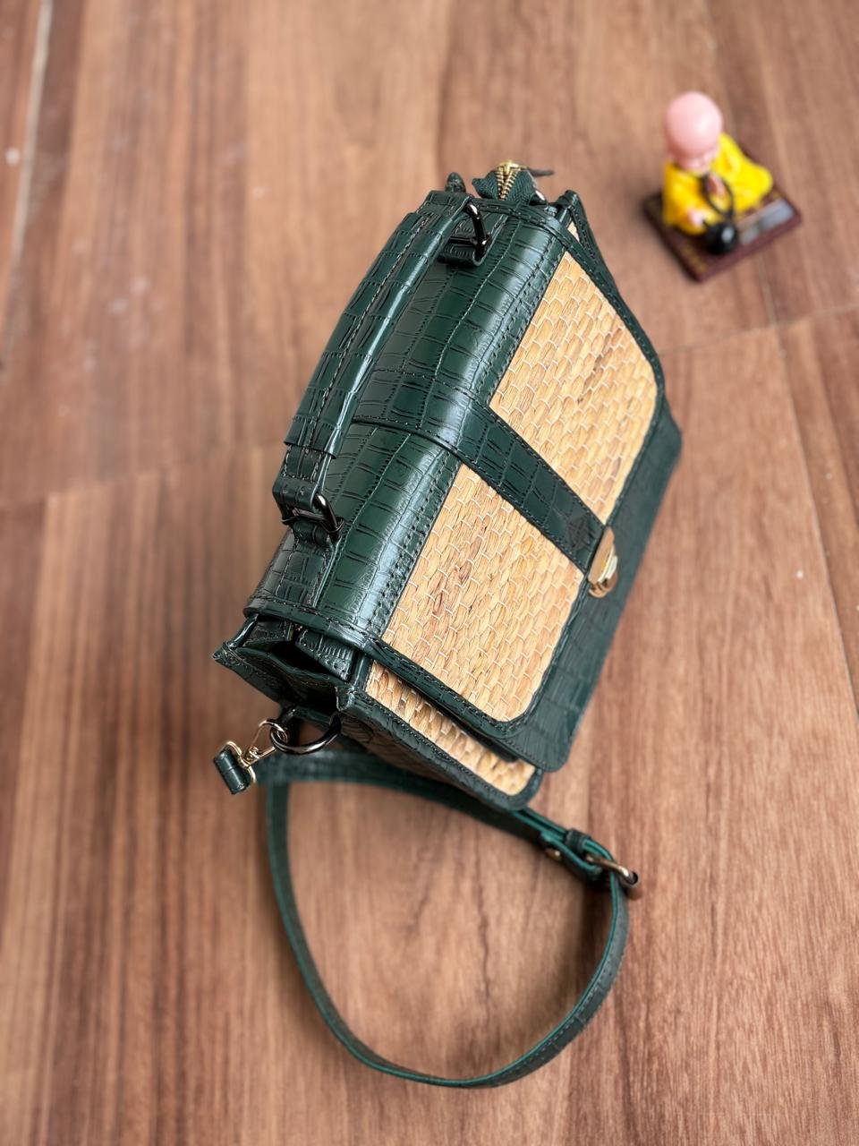 A perfect mix of elegance and everyday utility, this Subtle Sling Bag is crafted in a rich leaf-green croc-textured finish paired with a beautifully woven cane front. Compact yet thoughtfully designed, it offers multiple compartments to keep your essentials neatly organized while adding a natural, artisanal charm to your style.