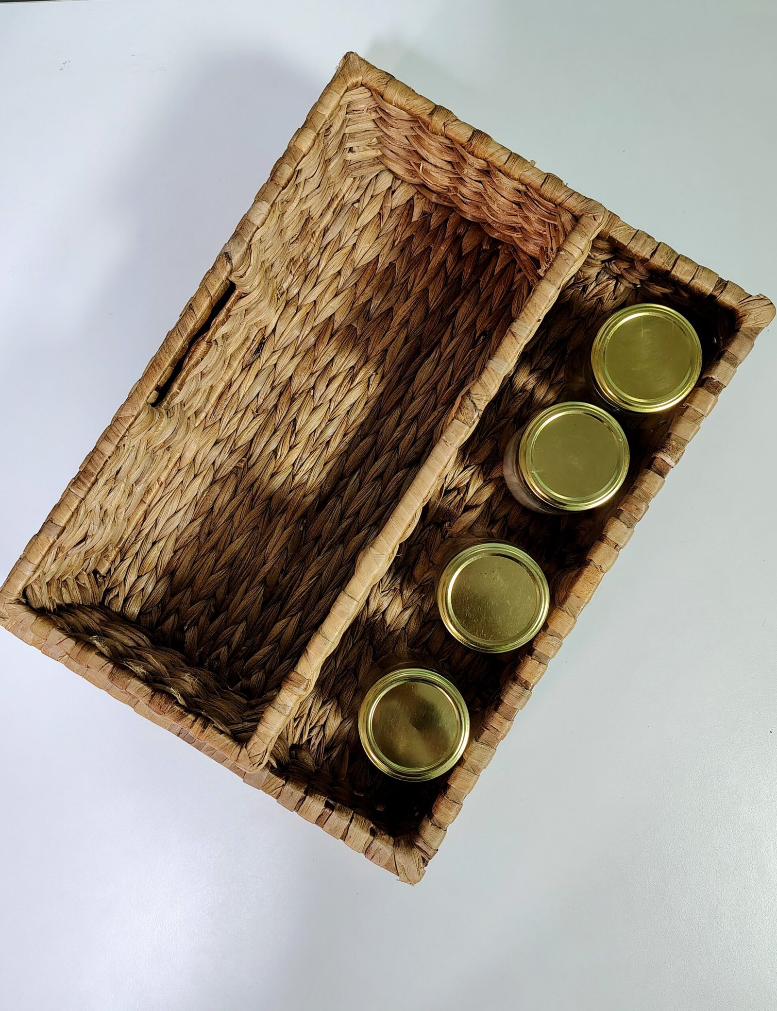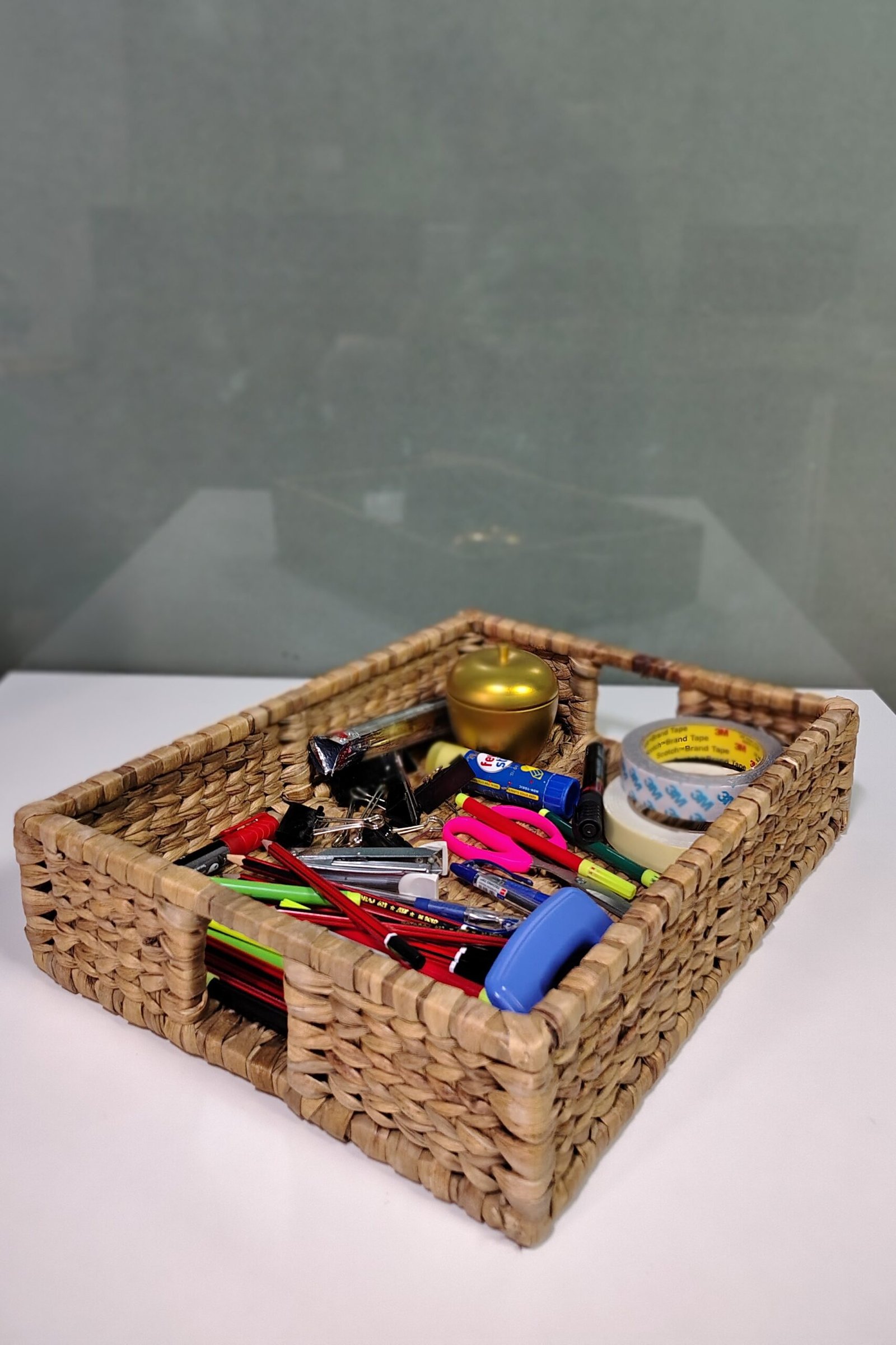 handwoven tray, made from sustainable water hyacinth and a cane frame, offers rustic elegance for serving or organizing. Durable and versatile, it’s a statement of eco-conscious craftsmanship.